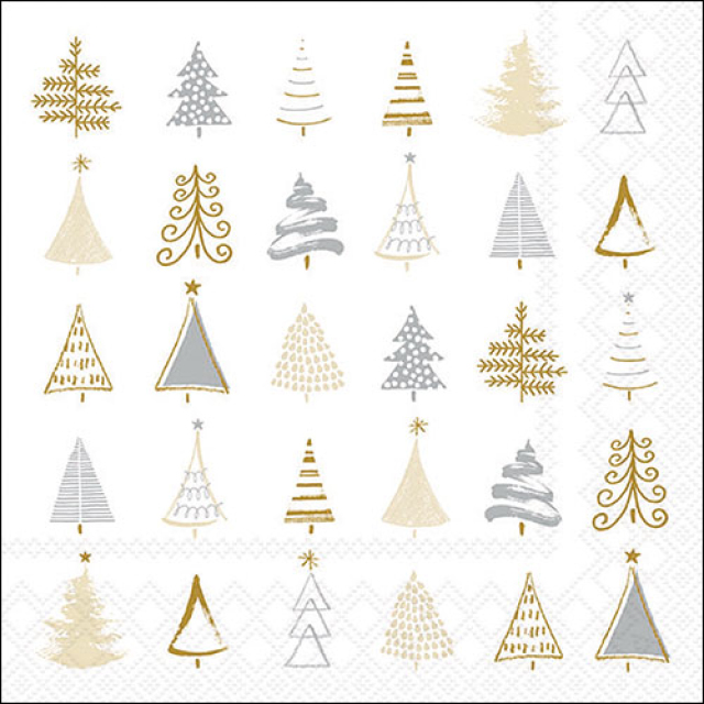 Napkin 33 Christmas tree doodles silver FSC Mix