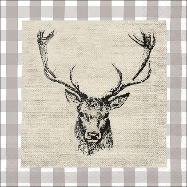 Napkin 33 Checked stag head brown FSC Mix