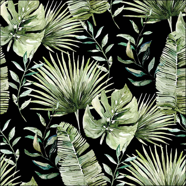Napkin 33 Jungle leaves black FSC Mix