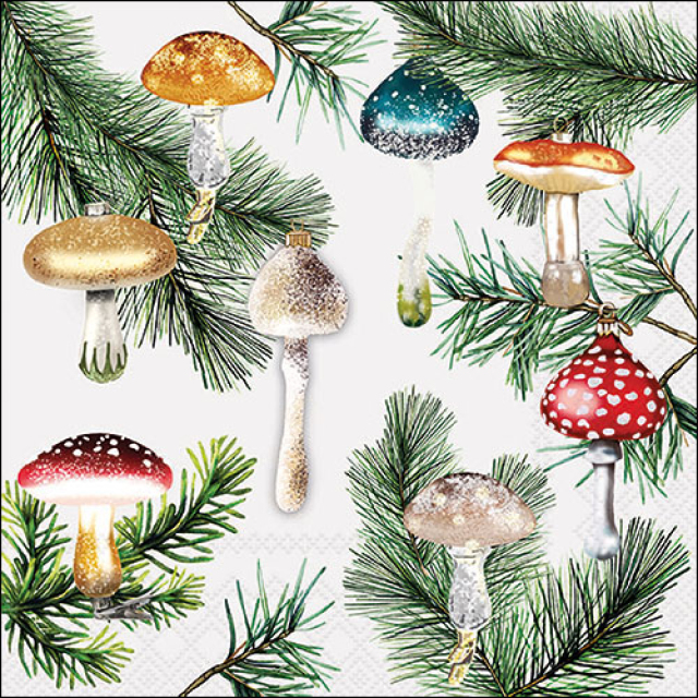 Napkin 33 Mushroom ornaments white FSC Mix