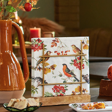 The Christmas robins collection offers a cheerful, cozy Christmas atmosphere. Find the adorable robin design on all napkins and accessories.
