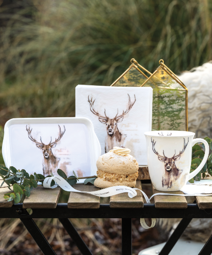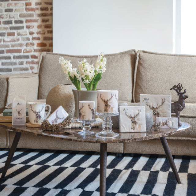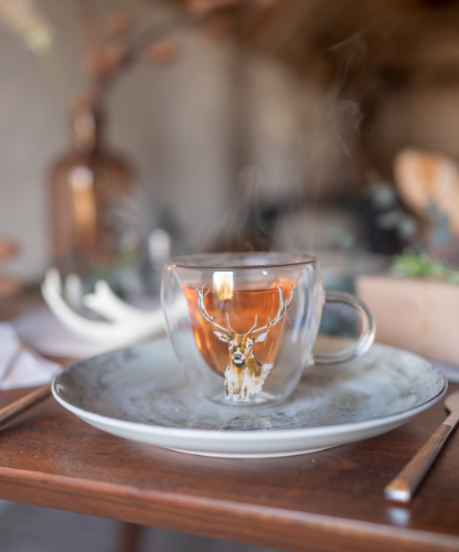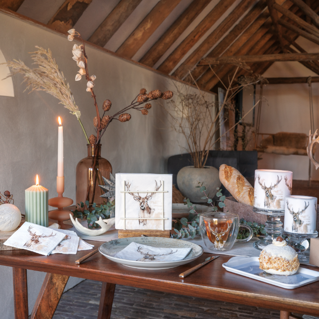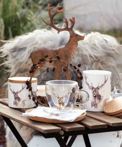 Building on the living trends of the first half of 2023, such as 'Ode to Nature' or 'Natural Beauty', this design has become a contemporary combination of both. As an ode to natural beauty, this proud deer with big, majestic antlers adorns our new winter series. The serenity of the design is enhanced by the white background and calm colours.