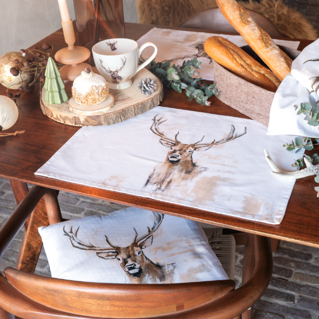 More than just decorative napkins, this extensive line includes coordinating aprons, oven mitts, placemats, and even decorative cushion covers. This makes the Antlers collection an easy, complete solution for customers looking to transform their home into a serene winter haven, making it a perfect gift set option.