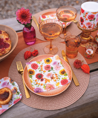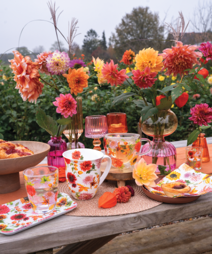 Styling tip Combine Autumn blooming with linen, wood, and golden accents to enhance the warmth of the colours. It's also ideal for a seasonal tea moment or indoor picnic – a great way to bring the joy of nature to your customers' homes as the days grow cooler.