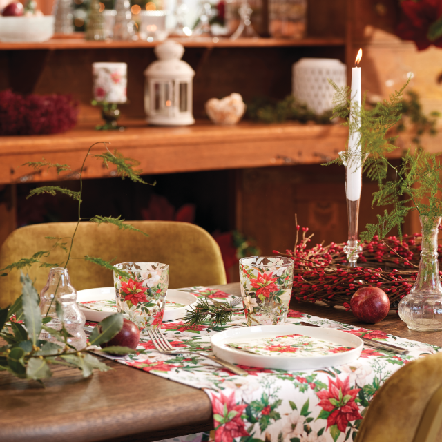 Christmas Florals offers a cheerful, complete range of festive napkins and accessories.
