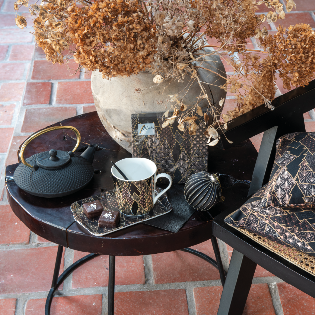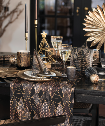 If you want to make a modern and trendy statement this Christmas with blacks and golds, this design is the way to go.