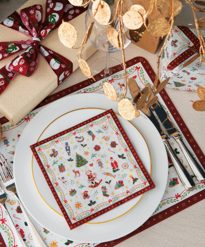 More, more, and even more. Our revamped napkin series "Ornaments all over" is a super fun and popular design that, after years of quietly staying in the background, is now shining brightly in the foreground once again. Now even more extensive and with more accessories than ever before. We're proud to offer you a series that enchants you and your customers with the ultimate Christmas feeling and brings so much positivity to all the joyful and playful moments during the Christmas season.