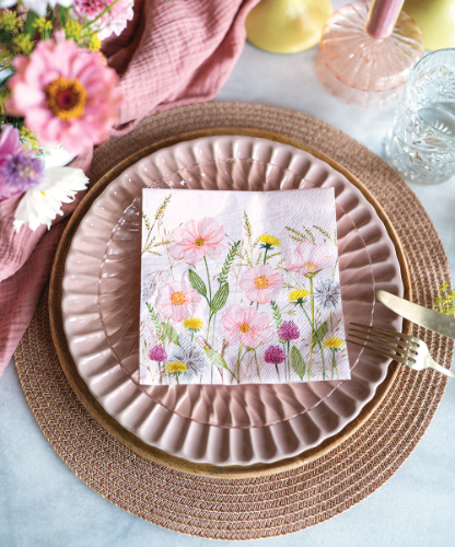 This series can be styled in countless ways. For a soft and romantic look, pair the napkins with white or light pink tableware. Looking for more contrast? Combine Pastel flowers with wooden details or earthy tones to let the pastel blooms stand out even more. Whether for a brunch in the garden, a picnic or a simple coffee break, this series brings a gentle touch of spring or summer to the table.