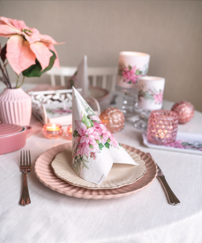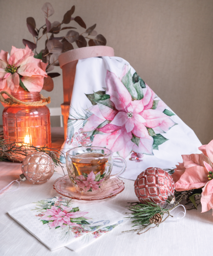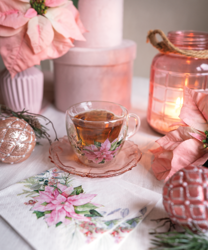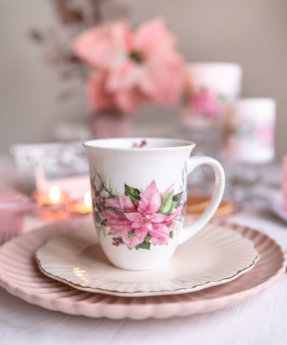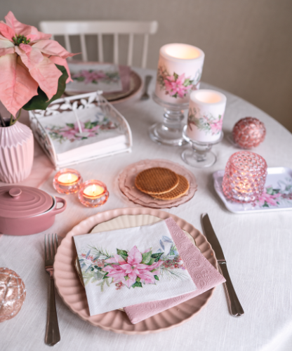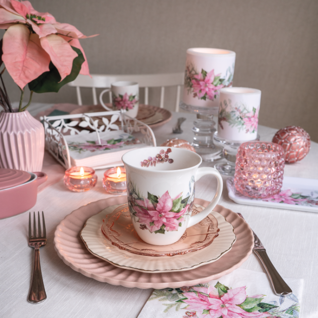 Whether styled on a festive breakfast table or as part of a gentle Christmas display, the Pink poinsettia collection adds charm and calm to every setting.