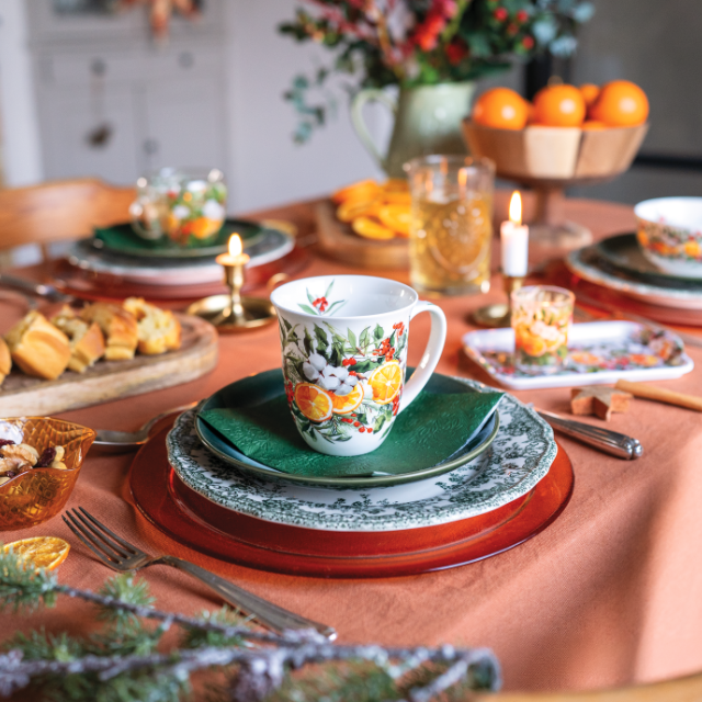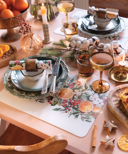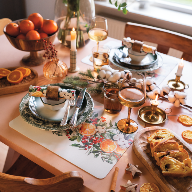 But Winter oranges is more than a napkin series – it’s a complete range designed to create a welcoming, festive ambiance. In addition to napkins in multiple formats, you’ll find matching candles, matchboxes, mugs, kitchen towels, placemats, and trays. Ideal for offering your customers a coherent, styled look for their winter home.