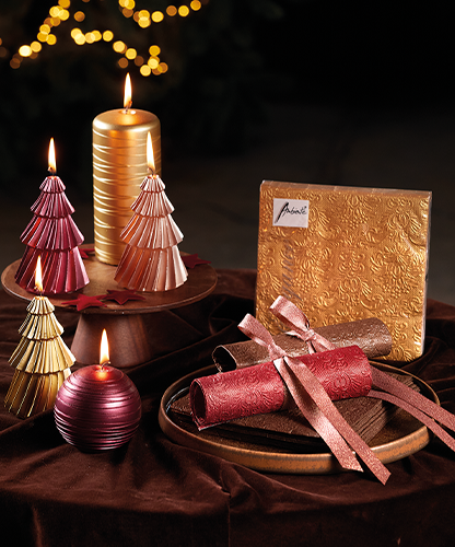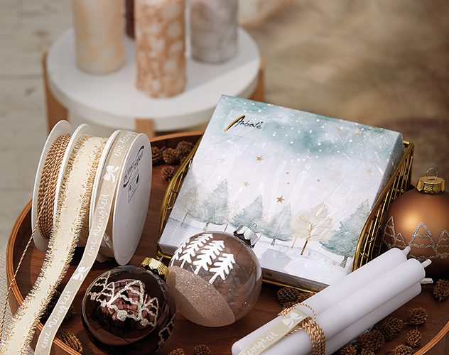 Coordinated collections: Through intensive trend research, our joint designers develop new trend recommendations every year. This means that napkins, candles, ribbons, wrapping paper, and glass ornaments of the CTG members are all perfectly coordinated, simplifying your buying process.