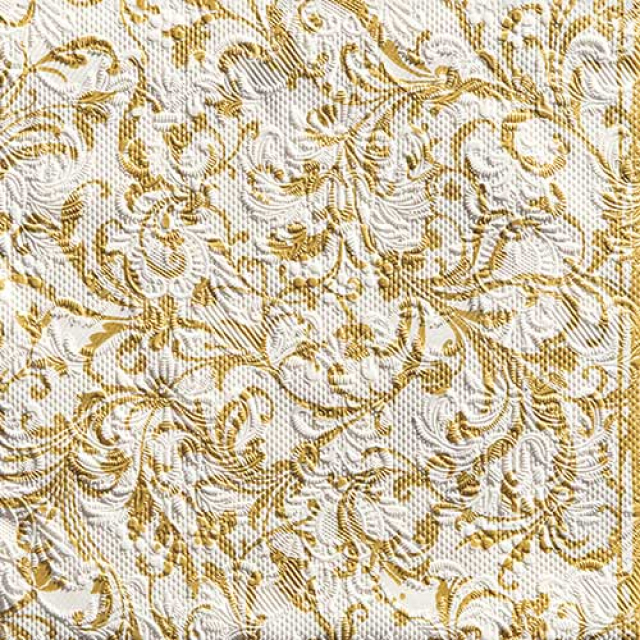 Napkin 33 Elegance Damask white/gold FSC Mix