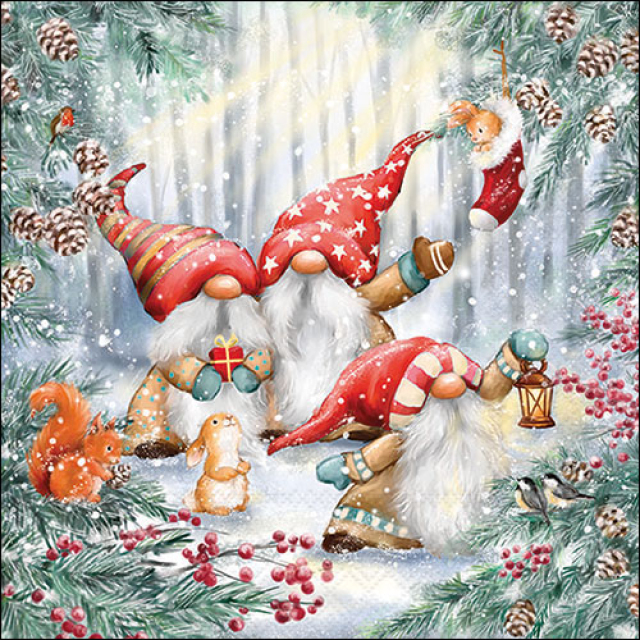 Napkin 33 Gnomes in snowy forest FSC Mix