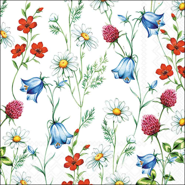 Napkin 33 Mixed wild flowers white FSC Mix