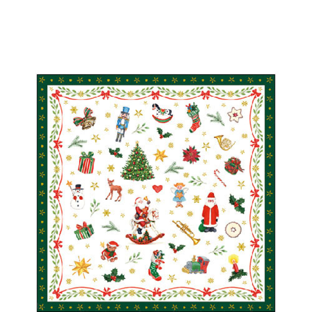 Napkin 25 Ornaments all over green FSC Mix