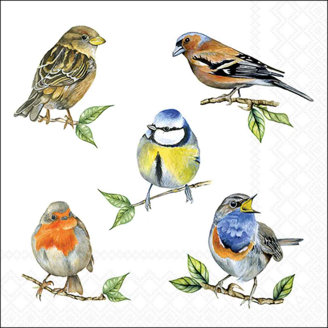 Napkin 33 Bird species white FSC Mix