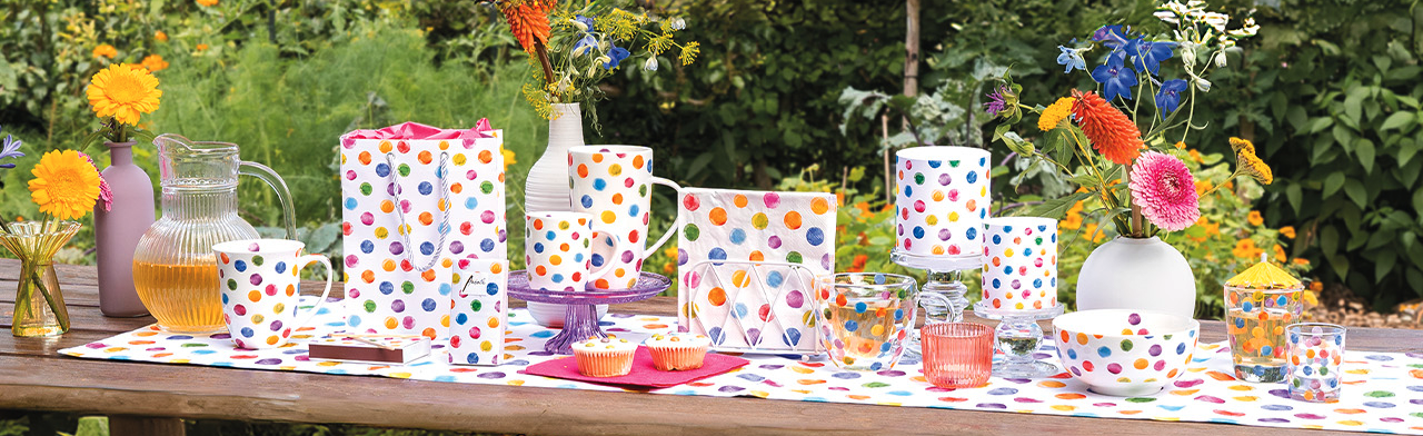 Met Butterflies in field creëert u een kleurrijke tafelsfeer vol vrolijke vlinders en bloemen, compleet met nieuwe accessoires zoals een tafelkleed en broodmandje.