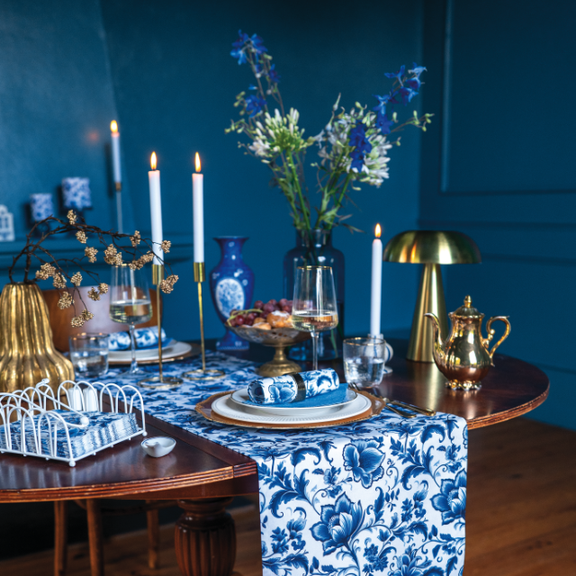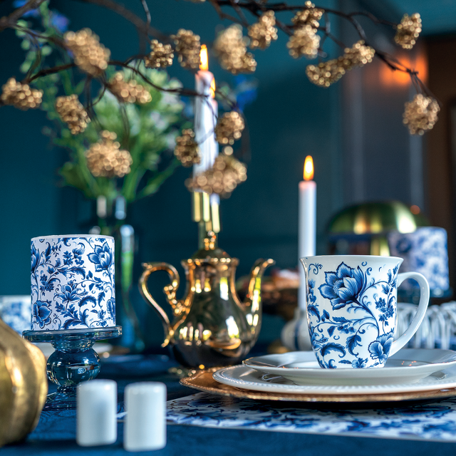 Dankzij de veelzijdige blauw-wit combinatie kan deze serie moeiteloos worden gestyled. Combineer met effen wit voor een klassieke, frisse look of voeg zilveren en gouden accenten toe voor een luxueuze tafelsfeer. Wilt u juist meer contrast? Zet Delft blue florals naast warme houten tinten en natuursteen voor een landelijk, robuust gevoel. Ook in moderne keukens met strak design vormt dit dessin een verrassend stijlvol accent.