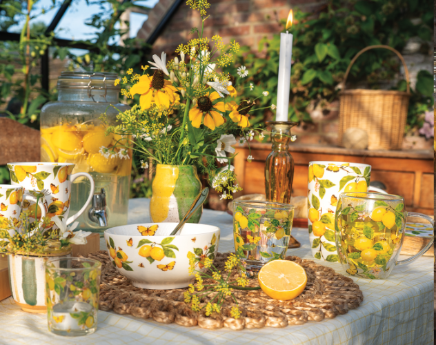 Wat Fresh lemons extra bijzonder maakt, is het uitgebreide aanbod aan bijpassende accessoires. Naast servetten in meerdere formaten biedt de serie sfeervolle kaarsen, mokken en glazen, maar ook placemats, dienbladen en schalen. Zelfs details zoals lucifers, cadeauzakjes en handkerchiefs zijn uitgevoerd in hetzelfde dessin. Zo creëert u eenvoudig een compleet assortiment waarmee uw klanten hun winkel aantrekkelijk en inspirerend kunnen presenteren.