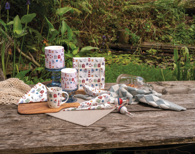 De serie "Nautical items" is subtiel en praktisch en biedt een breed scala aan producten die perfect in uw winkel passen en uw klanten direct het perfecte vakantiegevoel bezorgen. Uiteraard bevat de collectie papieren servetten in lunch- en cocktailformaat, kaarsen in twee maten, theedoeken, een klein dienblad, dubbelwandige theeglazen met een inhoud van 0,25 liter en mokken van 0,2 en 0,4 liter.