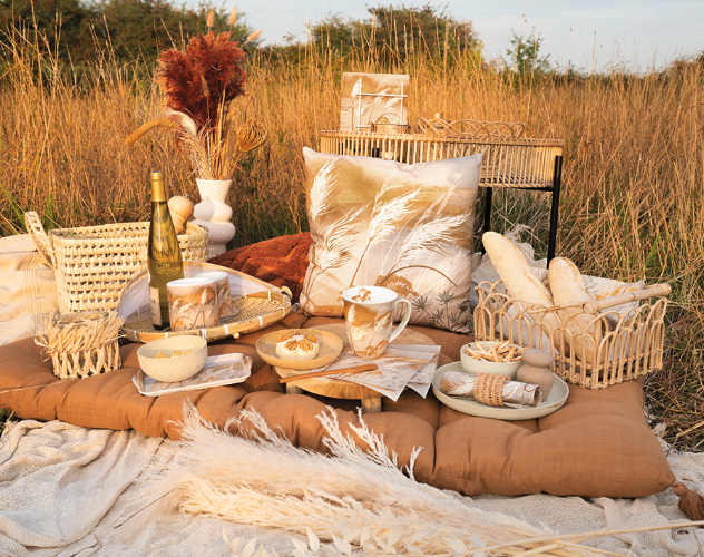De serie "Waving grass" leent zich uitstekend voor een zorgvuldig samengesteld assortiment tafel- en woonaccessoires. Zo kunnen uw klanten het thema rust doortrekken in hun gehele woonruimte.