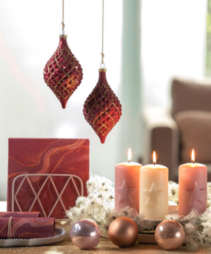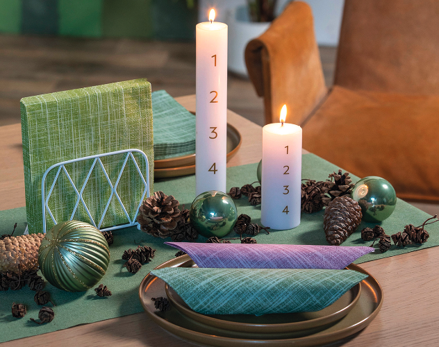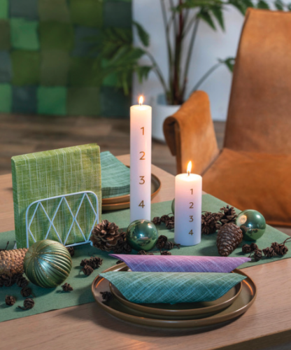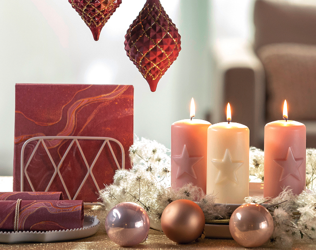 Coordinated collections: Through intensive trend research, our joint designers develop new trend recommendations every year. This means Ambiente’s napkins, the candles, ribbons, wrapping paper, and glass ornaments are all perfectly coordinated, simplifying your buying process.